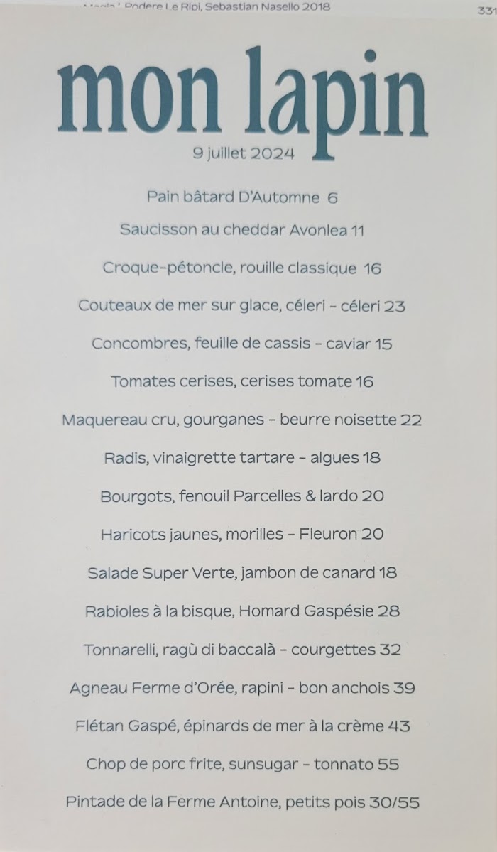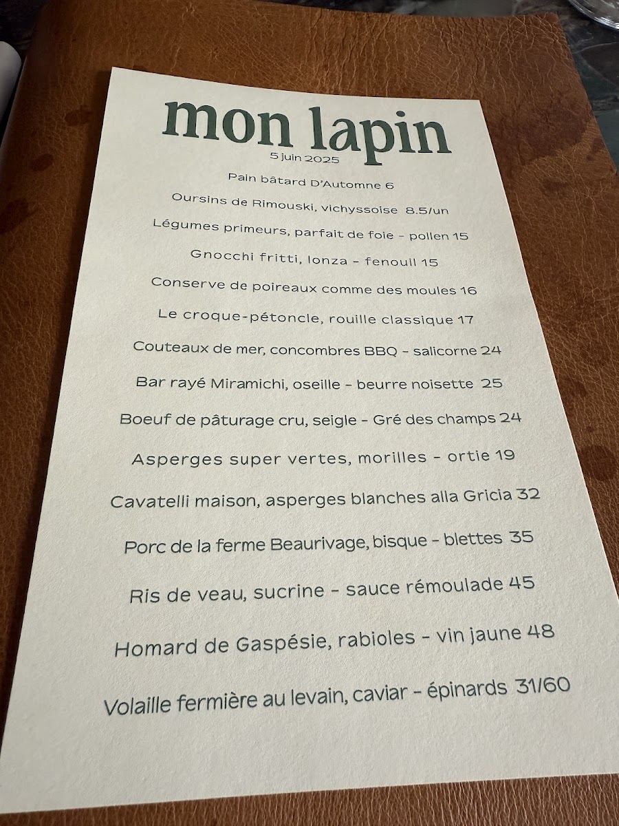 Vin Mon Lapin, located in Montreal, is a culinary treasure that captivates diners with its innovative, seasonal cuisine. Each dish is a masterpiece, expertly crafted to balance flavors and present artful plating. Guests rave about the standout scallop sandwich and creatively prepared seasonal offerings like agnolotti and smoked eel. The atmosphere is warm and inviting, with knowledgeable staff who enhance the dining experience. Voted one of Canada's best restaurants, Vin Mon Lapin combines exceptional food, thoughtful service, and a passion for creativity, making it a must-visit destination for food lovers seeking a memorable dining adventure.